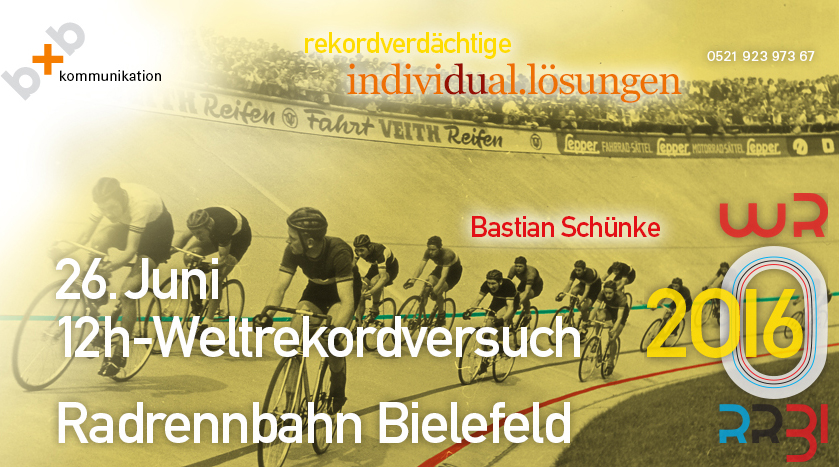 nebst LogoVorschlag für die Radrennbahn Bielefeld über das Event hinaus … Neuer Termin für Weltrekord-Versuch "liegt zzt. auf Eis"