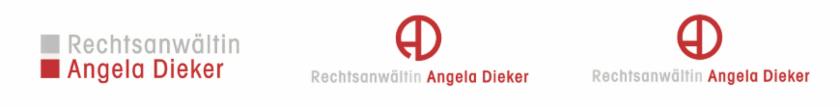 Rechtsanwaeltin Angela Dieker (MI): CI/CD uvm. - gewaehlte Variante less is more >> alternative gleichwertige Entwuerfe Signet AD, Var. offen, Var. geschl.
