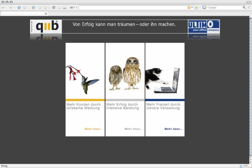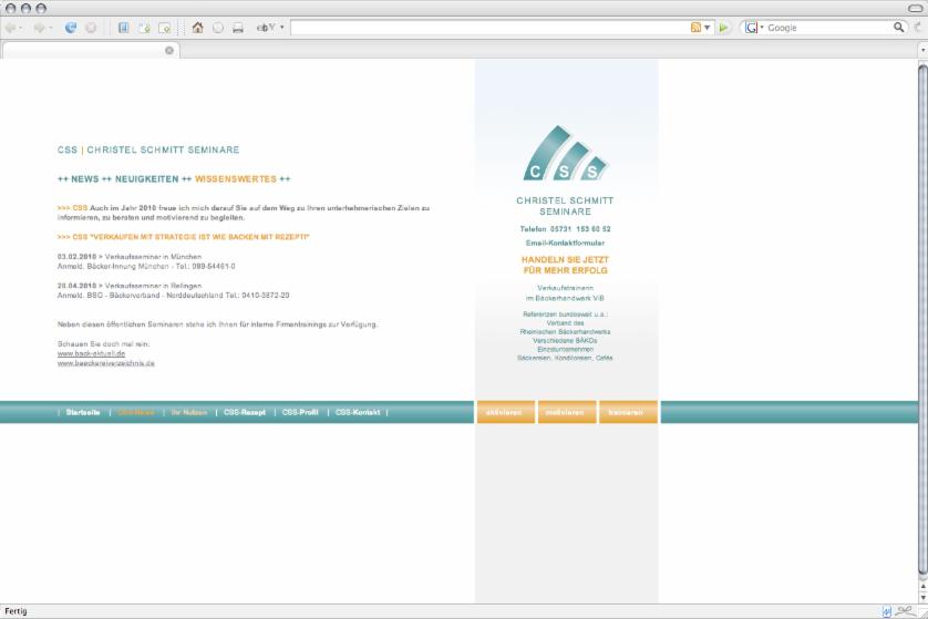 (fuer das CMS, das Hosting, die .de-Domain und die Email-Adressen fallen monatliche 1und1-Provider-Gebuehren von rund 10,-- *