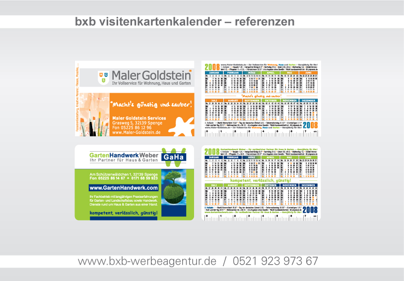 14 Tage braucht die gesamte Abwicklung der Visitenkarten-Kalender in der Regel Von der Beauftragung bxb durch Sie, über Zahlungseingang (80%) bei bxb und dann die Beauftragung des Produzenten
